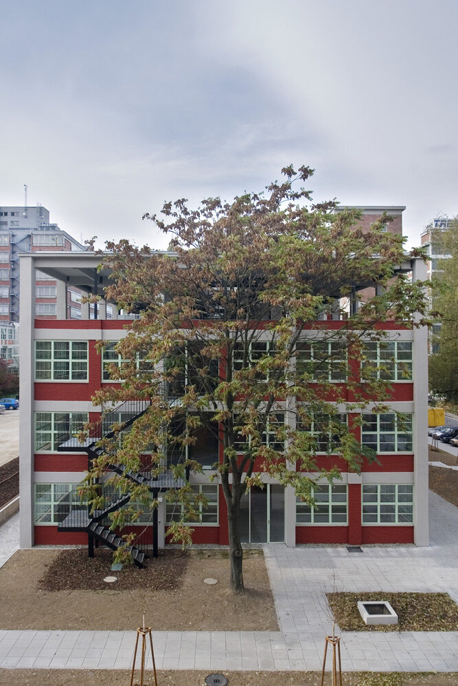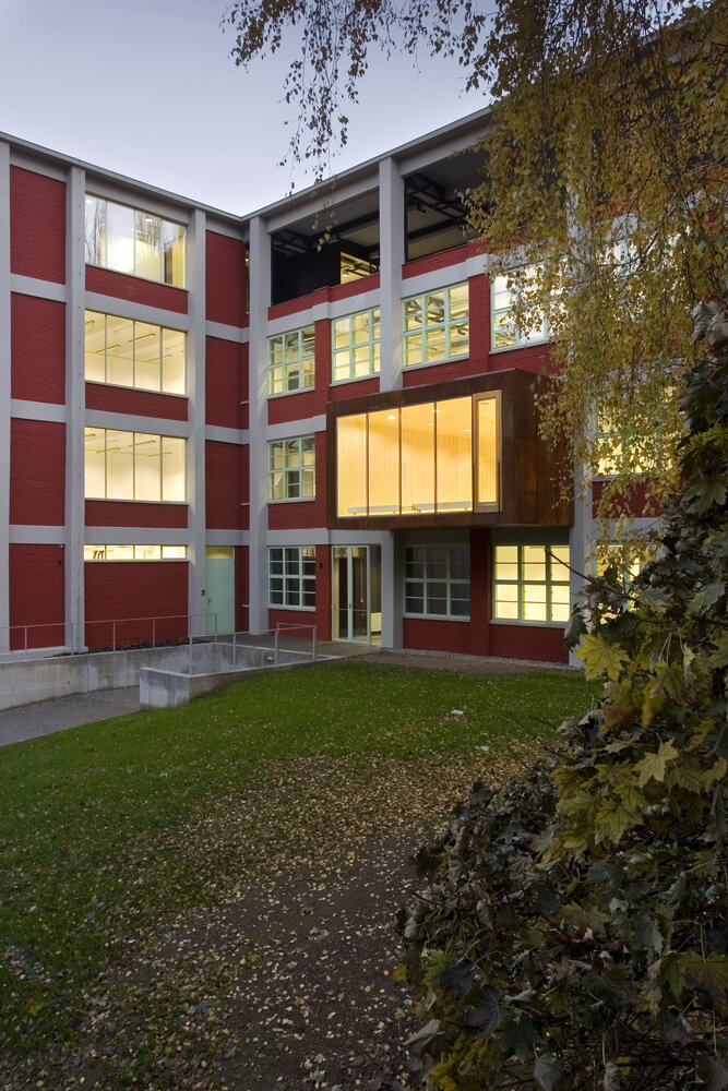 Požadavkem zadání bylo přetvořit výrobní skeletový objekt (3x13 polí 6,15x6,60 m, 4np.) na kancelářskou budovu s maximálním množstvím flexibilních kancelářských ploch a odpovídajícím zázemím. Záměrem a cílem od počátku, bylo maximálně zachovat podstatu a charakter Baťovských výrobních objektů, zvláště jejich utilitárnost, konstrukční a materiálovou pravdivost a proporční vyváženost. Velmi důležitou roli hrála otázka proporcí budovy jako celku vůči urbanistickému kontextu celého areálu. Na návrh prostorové koncepce měl zásadní vliv statický stav budovy, který nedovoloval další zatěžování čtvrtého podlaží. Zbourání tohoto posledního podlaží pro nás z prostorově-proporčních a urbanistických důvodů nepřicházelo v úvahu, rozhodli jsme se ho, byť pouze ve své konstrukční podstatě, ponechat. Byl odstraněn celý obvodový plášť a vše uvnitř půdorysu, zůstal pouze holý skelet. Do střední části tohoto, nyní volného prostoru, čtvrtého podlaží byl vsazen lehký montovaný objekt velkoprostorové kanceláře na vlastní subtilní ocelové konstrukci. Prostorová koncepce budovy se odvíjí z centrálního atriového prostoru (střední trakt), kolem něhož jsou uspořádány kancelářské plochy s přímím denním světlem.