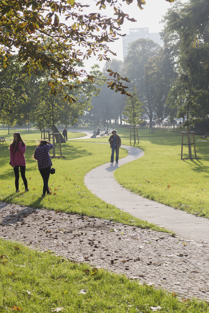 Bylo nezbytné zásadně změnit atmosféru místa, pozvednout park na svébytný, městský prostor, otevřený, uvnitř transparentní, bezpečný, vybízející k odpočinku i aktivitě, využitelný po celý rok, zhodnocující stávající kvalitu zeleně, současně však bez obav nekvalitní odstranit, ale především bylo nutno vše zorganizovat v přehledný a jasně čitelný prostor. Zásadní proměnou prošlo vše.