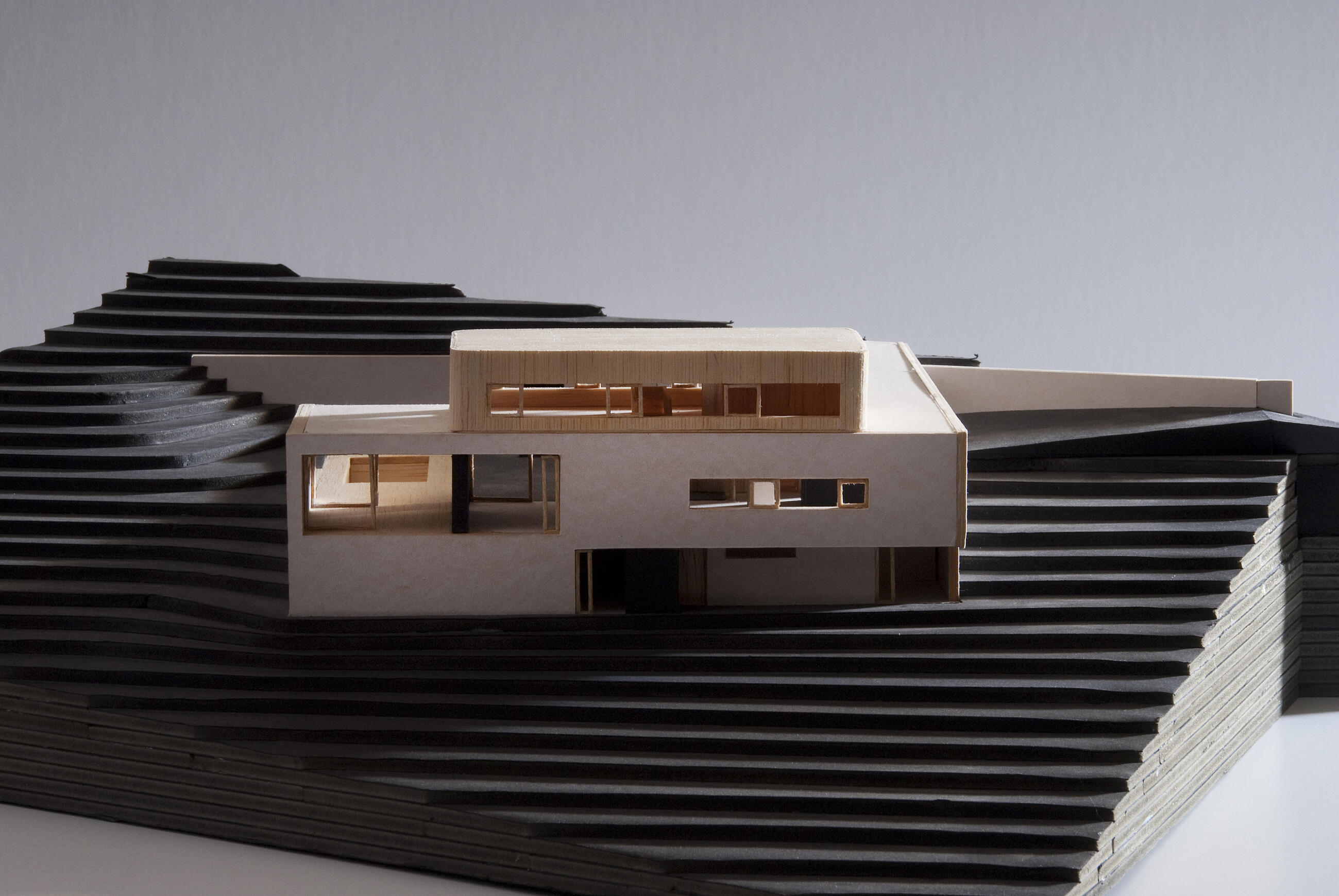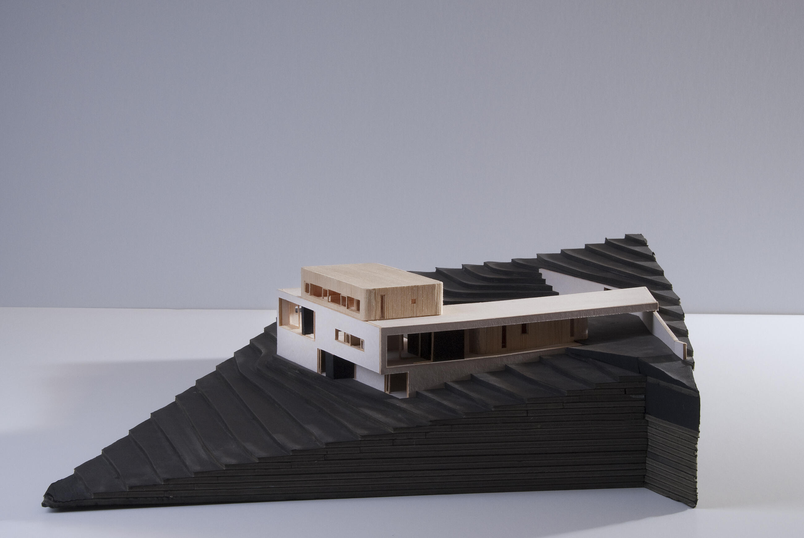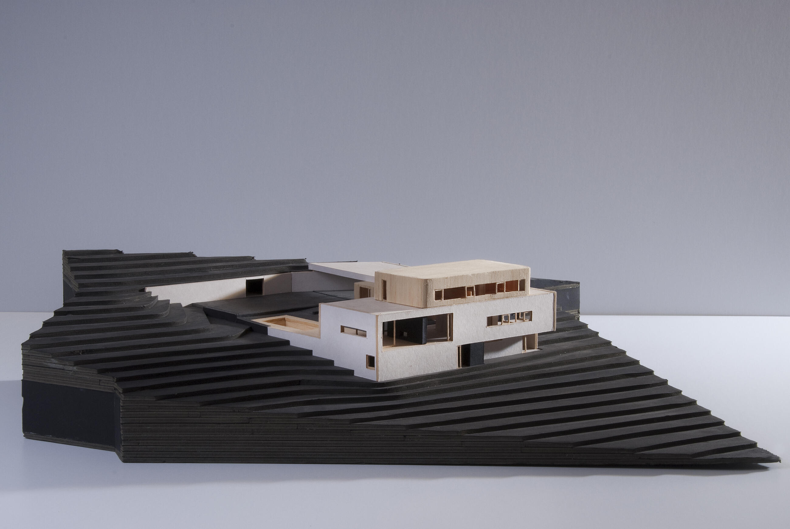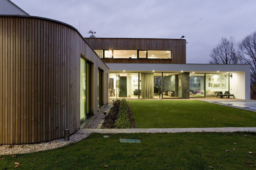 Dům leží na severozápadním svahu zlínských Lazů, je součástí lokality se šesti novými domy, navazujícími na stávající obytnou zástavbu. Umístění ve svahu pod příjezdovou komunikací určuje osazení i kompozici domu, který nemá uzavřenou garáž, jen prostor pro odstavení aut pod deskou, opírající se o betonovou zeď na hranici pozemku.